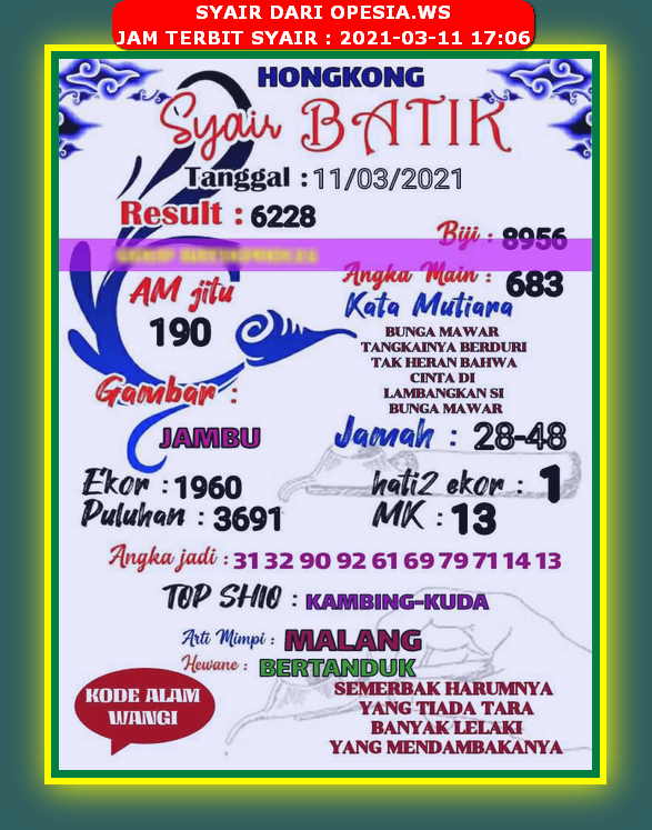 Syair Harian Hk 11 Maret 2021 Kode Syair Sgp Hk Sd Motesia