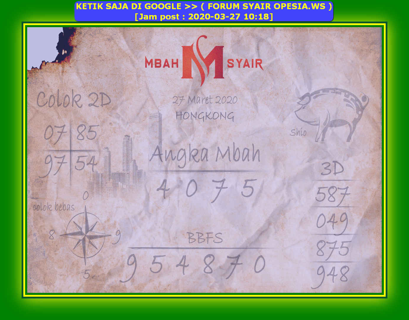 1 New Message Kode Syair Hongkong 27 Maret 2020 Forum Syair Togel Hongkong Singapura Sydney
