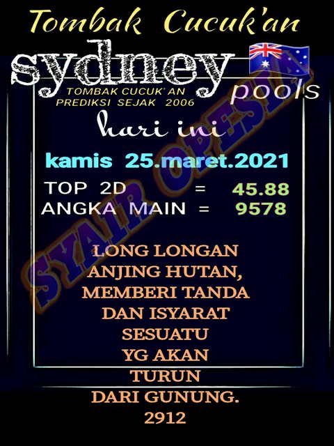 Prediksi Syair Sydney 25 Maret 2021 Keluaran Sydney Judi Slot