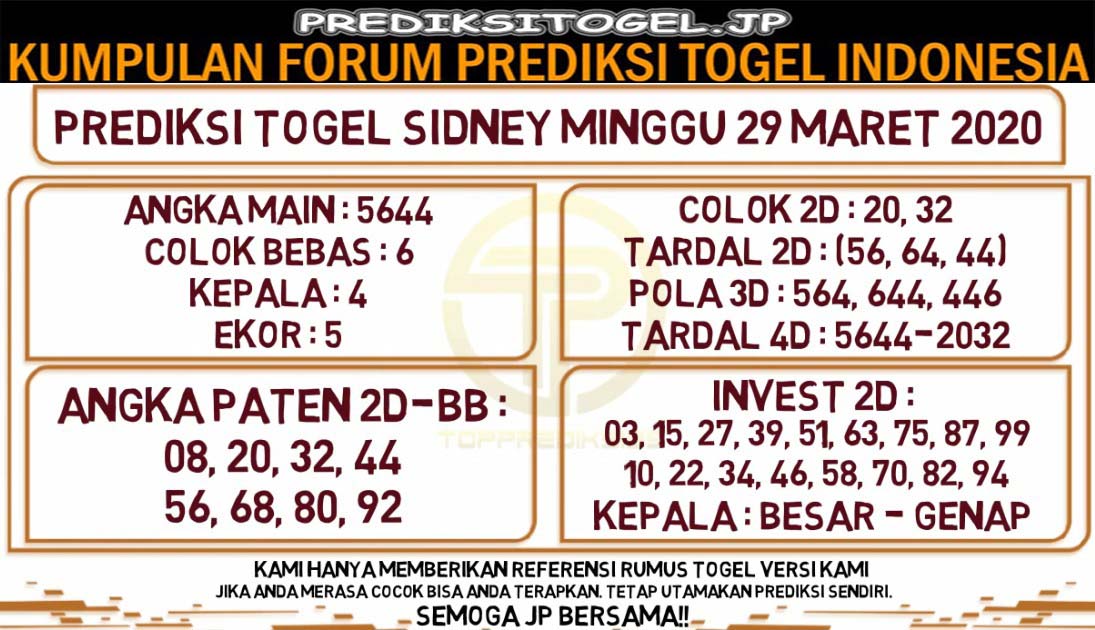 Source: Prediksi Togel Sidney Minggu 29 Maret 2020 Prediksitogel Jp