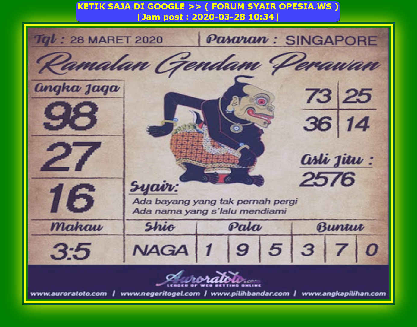 Syair Sgp Hari Ini Minggu 28 Maret 2021 Opesia Official