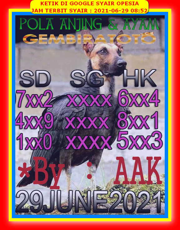 Source: Syair Sdy Hari Ini Selasa 29 Juni 2021 Opesia Official