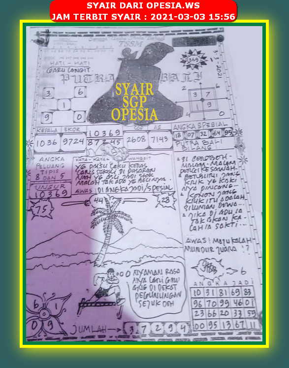 Syair Sgp Hari Ini Rabu 3 Maret 2021 Opesia Official